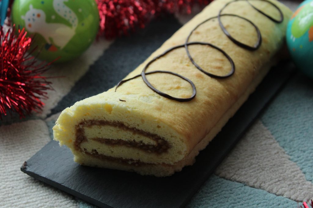 - Rouler délicatement la génoise sans trop la tasser afin que la garniture ne s’écoule pas par les extrémités.